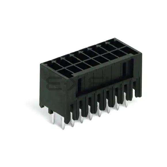 Optimized for automotive electronics, the 713-1408/105-000 from WAGO Corporation sets new benchmarks in Terminal Blocks - Headers, Plugs and Sockets reliability. This AEC-Q200 qualified solution addresses the unique challenges of electric vehicle power distribution systems while ensuring signal integrity in harsh automotive environments.The Header, Male Pins, Shrouded (4 Side) configuration incorporates automotive-grade sealing for under-hood installations. Compared to commercial components, it provides IP6K9K protection against dust and high-pressure washdowns.Available in 16 positions, the design supports 48V mild hybrid architectures. The dual-row arrangement minimizes voltage drop in high-current battery connections.8 positions per level optimize packaging density in ECU applications. The staggered contact pattern reduces mutual inductance between adjacent power and signal lines.The 2 stacking capability enables three-dimensional wiring harness routing. This approach reduces cable bulk by 30% in door and roof lining applications.Featuring 0.138" (3.50mm) pitch spacing, the design prevents tracking in high-humidity conditions. The creepage distance exceeds LV214 requirements for 600V systems.Vertical options facilitate PCB integration in space-constrained modules. The right-angle versions minimize Z-height for under-seat electronics.The Solder system ensures vibration-resistant connections meeting USCAR-2 standards. Accelerated life testing confirms performance beyond 25G vibration profiles.Through Hole installation satisfies automotive module mounting requirements. The anti-rotation features prevent loosening under vehicle vibration spectra.Meeting 10A IEC standards, the design accommodates regenerative braking currents. The mass-termination capability supports automated harness production.The 250 V certification includes testing for partial discharge in high-voltage systems. The design exceeds 800V requirements for electric vehicle powertrains.Rated for 10 A continuous current, the contacts employ automotive-tested alloys. The material selection prevents stress relaxation in high-temperature engine compartments.The 150 V rating includes 150% design margin for load dump scenarios. The insulation system withstands 1000V transients per ISO 7637-2.The Black housing incorporates automotive OEM-specific color coding. The UV-stable material retains color fidelity after 3000 hours of xenon arc testing.Operating across -60°C ~ 100°C range, the materials meet extended automotive temperature profiles. Validation testing includes 1000 thermal shock cycles from -40 C to 150 C.Tin plating provides optimal performance for automotive electrical systems. The surface treatment resists fretting corrosion in vibration environments.